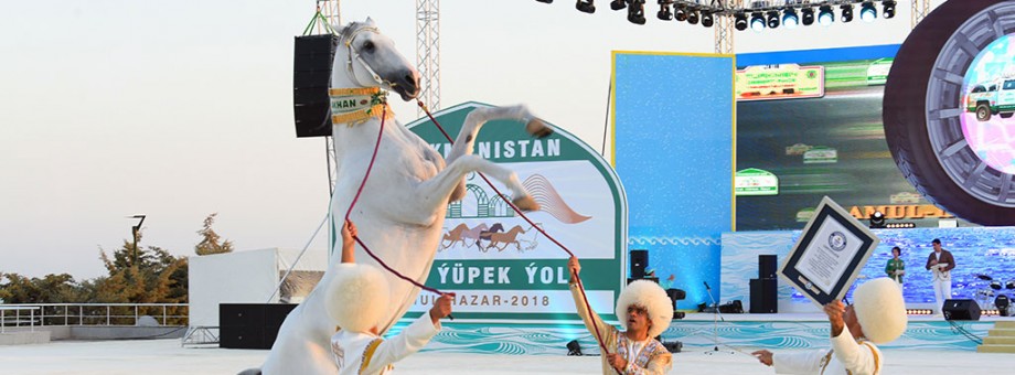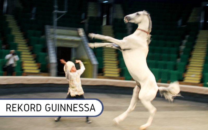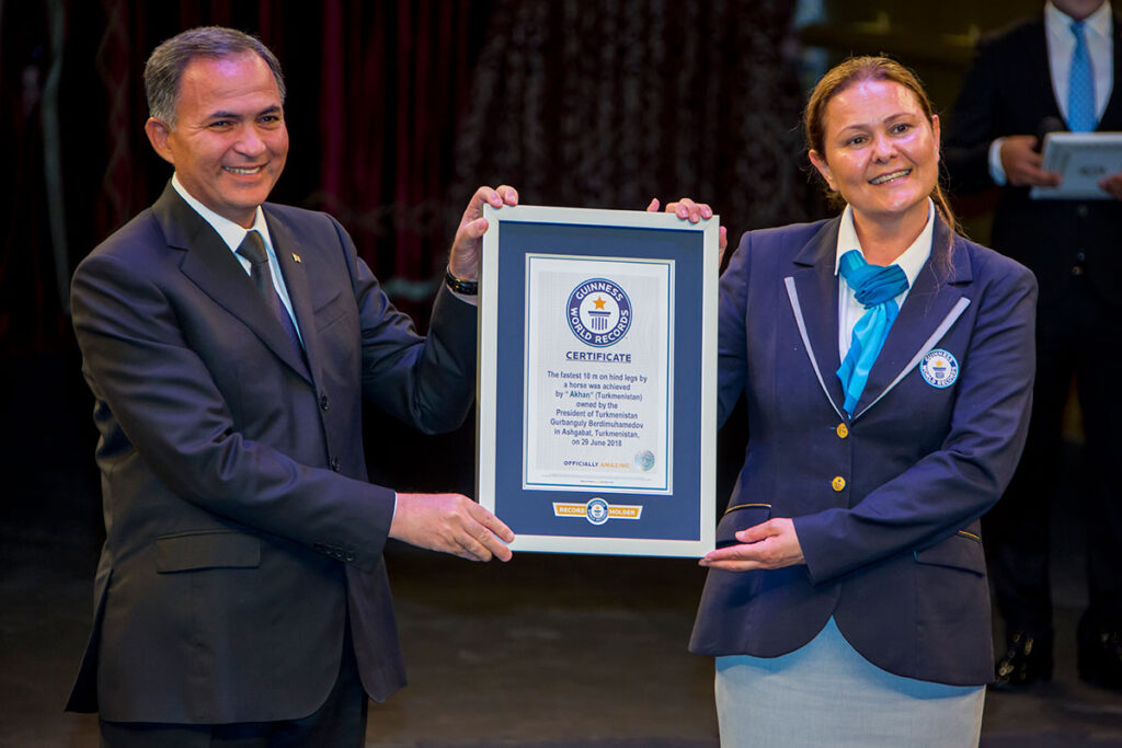 Rekord Guinnessa w kategorii „Najszybciej pokonane 10 m przez konia na tylnych nogach” należy do ogiera rasy achał tekińskiej o imieniu Akhan. 29 czerwca 2018 roku pokonał on dystans w 4,19 sekundy, podczas swojej próby w Aszchabadzie.