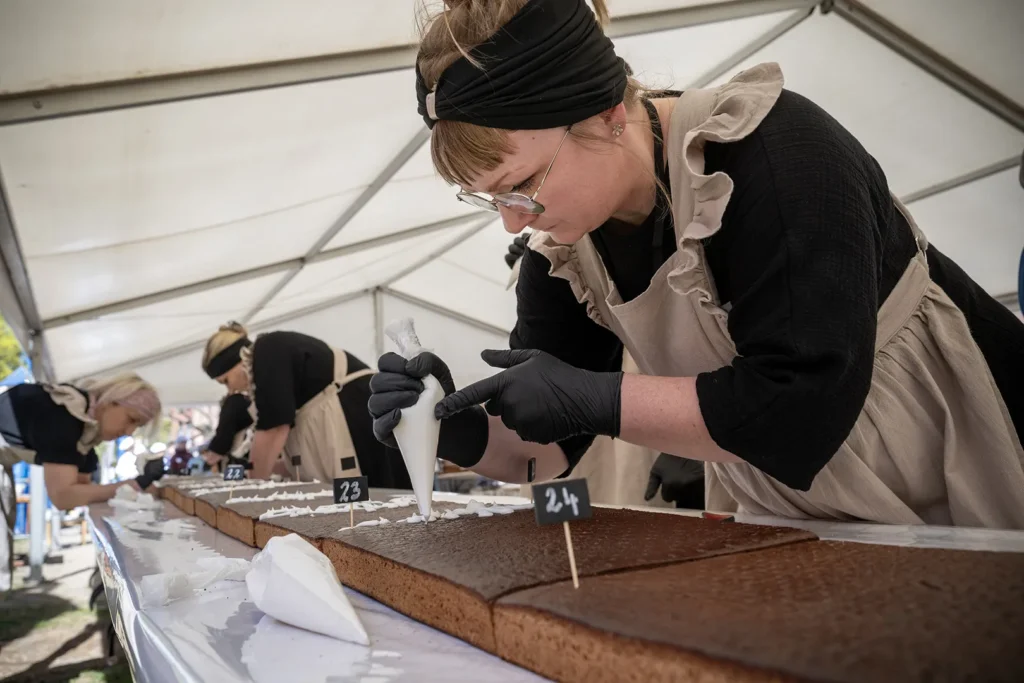 Stworzenie piernika o długości ponad 124 metrów to nie tylko kwestia przepisu, ale przede wszystkim logistyki. Cały proces wymagał długich przygotowań i współpracy wielu rąk. Piernik powstawał w mniejszych odcinkach, które następnie zostały połączone na specjalnie przygotowanych stołach.