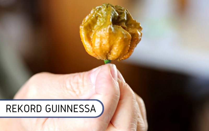Piekący język, pot zraszający czoło, łzy w oczach i nagły skok temperatury – wielu z nas uwielbia ostre i pikantne jedzenie, w tym oczywiście papryczki chilli. Każdy ma jednak swoje granice i tylko nieliczni są na tyle odważni, by sięgnąć po najostrzejsze papryczki na świecie. Ostrość chili mierzy się za pomocą skali Scoville’a. Najwyższy poziom to 16 milionów jednostek, czyli czysta kapsaicyna (organiczny związek chemiczny odpowiedzialny za ostry, piekący smak papryki chili). W naturze tak wysoki poziom jednostek nie występuje, jednak hodowcy z całego podejmują wszelkie starania, by najostrzejsza papryka na świecie wyrosła właśnie w ich ogródkach. Jaki szczep został wpisany do Księgi rekordów Guinnessa jako najostrzejsza papryczka chilli na świecie?