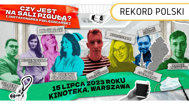 15 lipca 2023 roku w warszawskiej Kinotece w Pałacu Kultury i Nauki odbył się wyjątkowy zjazd pielęgniarski. Prelegentami I Instakongresu Pielęgniarskiego pod hasłem „Czy jest na sali piguła” były bowiem osoby posługujące się social mediami równie wprawnie co strzykawkami! Swoje wykłady poprowadzili: Mateusz Sieradzan (@panpielęgniarka), Weronika Nawara (@wczepkuurodzona), Joanna Kosińska (@joan_the_needle), Katarzyna Leńska (@kasiaambu), Anna Gąsior (@nursegram.pl), Agata Korgól (@agata_leczy_rany), Gilbert Kolbe (@gilbertkolbe), Lena Serafin (@nursing_professional_advisory), Artur Szymczak (@artur_szymczak_) oraz Anna Woda (@higienicznawoda). Gościnią specjalną wydarzenia była kultowa Siostra Bożenna!