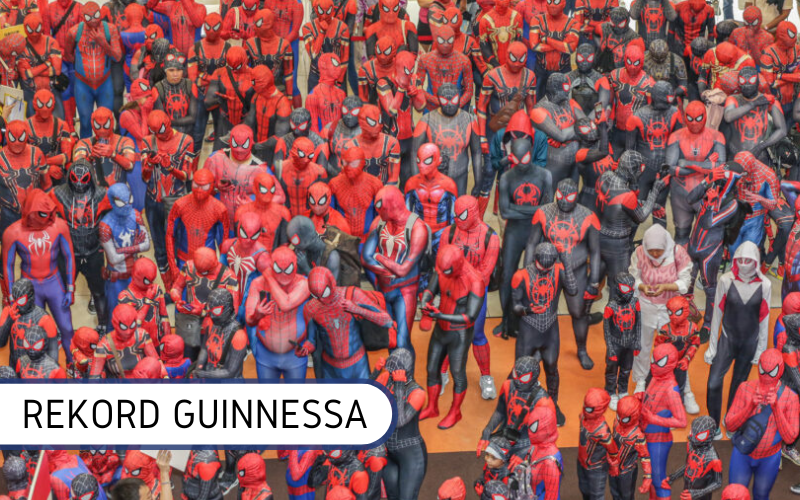 Poprzedni rekord Guinnessa na najwięcej osób przebranych za Spider-Mana zgromadzonych w jednym miejscu wynosił 547 osób. Osiągnięcia dokonały firmy Marvel Enterntainment oraz Sony Interactive Enterntainment, które połączyły swoje siły, aby osiągnąć wspólnie coś wielkiego. Wydarzenie odbyło się 16 września 2018 roku w Sztokholmie w Szwecji.