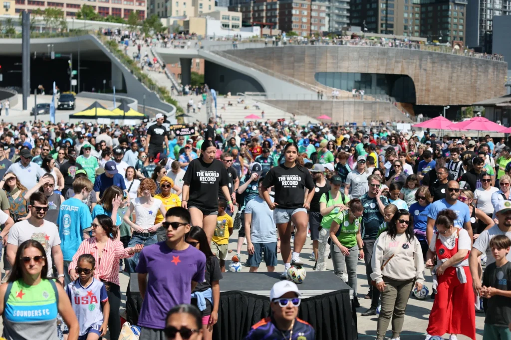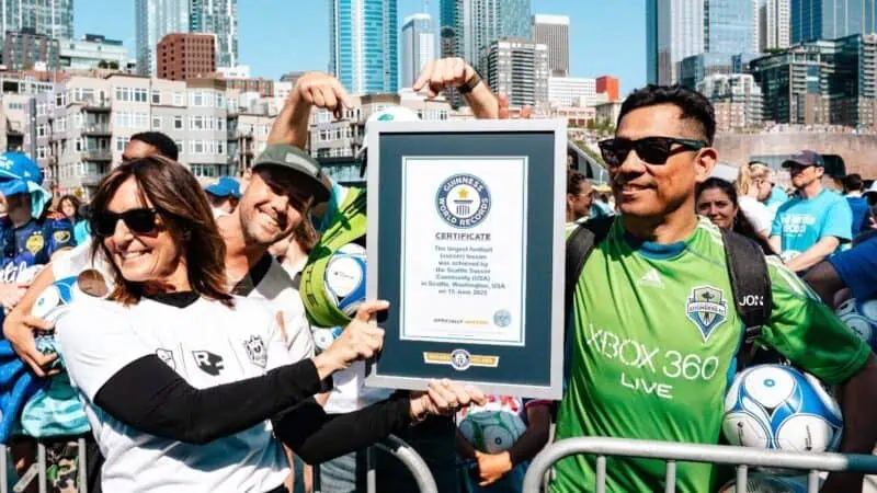 Seattle Soccer Community udowodniło, że jest ważną społecznością skupioną wokół futbolu w Stanach Zjednoczonych, pobijając rekord Guinnessa w kategorii „Największa lekcja piłki nożnej”. Wydarzenie, które odbyło się 15 czerwca 2025 roku na Pier 62 w Seattle, zgromadziło aż 1 038 uczestników – dzieci, rodziców, fanów i lokalnych entuzjastów futbolu, którzy przez 30 minut wspólnie trenowali pod okiem legendarnych zawodników i trenerów Seattle Sounders FC oraz Reign FC.