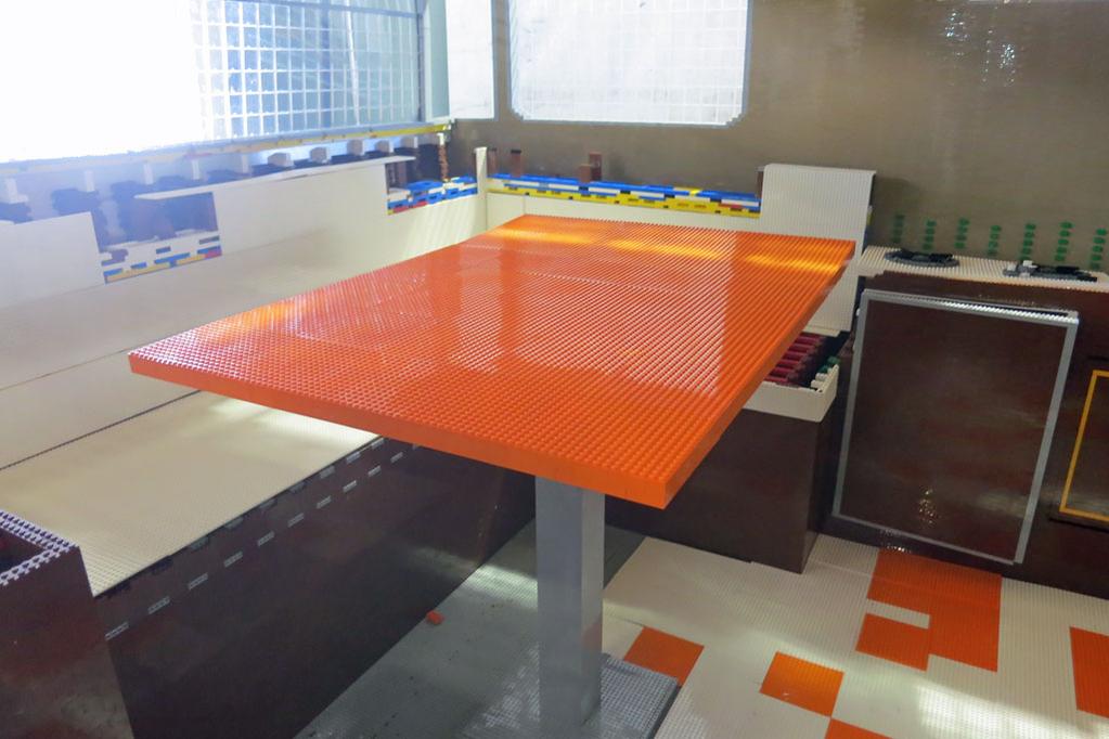 Najciekawszą rzeczą w konstrukcji przyczepy jest to, że jest w stu procentach funkcjonalna i wyposażona tak, jak standardowe przyczepy campingowe. Możemy w niej położyć się na łóżku, usiąść w fotelu, zajrzeć do lodówki, zapalić lub zgasić lampę, odkręcić i zakręcić wodę w kranie (zlew znajdujący się pod kranem zawiera rury odprowadzające wodę!), a najodważniejsi mogą próbować umyć zęby klockową szczoteczką. Posiada nawet własną kuchenkę gazową, choć na niej raczej nic nie ugotujemy – jako pierwsze stopiłyby się klocki. Cała konstrukcja przyczepy wewnątrz podtrzymywana jest metalową ramą.