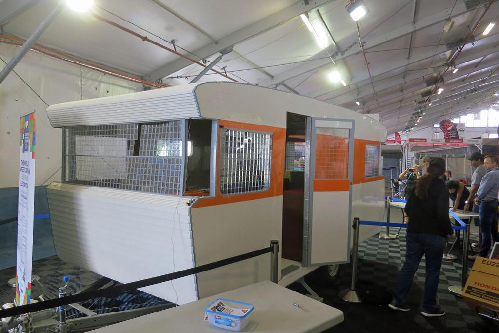 Przyczepa obecnie jest częścią wystawy w Birmingham (Wielka Brytania) w National Exhibition Centre na targach Motorhome & Caravan Show. Misterna konstrukcja powstała na podstawie rzeczywistego modelu przyczepy o nazwie T@B 320 RS Teardrop. Wyjątkową kompozycję z klocków mogli obserwować również uczestnicy wydarzenia BRICK 2015, czyli zlotu fanów klocków Lego.