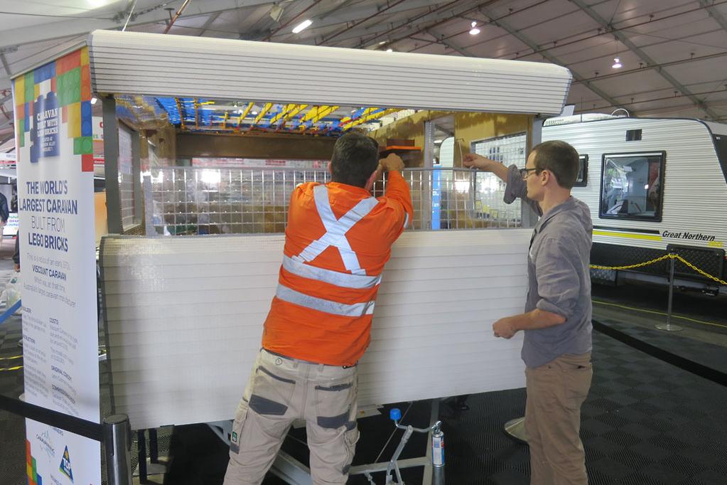 Budowa odbywała się w Brisbane, gdzie wybrano miejsce idealne do promocji caravaningu – branży kluczowej dla lokalnej turystyki. Ekipa pracowała codziennie po 10–12 godzin, układając klocki warstwa po warstwie, by odwzorować dokładne proporcje standardowej australijskiej przyczepy kempingowej o długości kilku metrów.