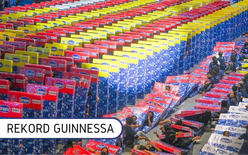 Setki materacy ustawionych w długiej linii, tysiące osób stojących tyłem do siebie i jedno polecenie do startu – w ten sposób na SMX Convention Center w Pasay padł rekord Guinnessa w kategorii „Największe ludzkie domino z materacami”. Dla filipińskiej firmy Multiflex RNC Philippines, Inc – Uratex była to nie tylko efektowna akcja marketingowa, ale przede wszystkim jubileuszowy prezent dla setek potrzebujących, do których trafiły wykorzystane materace.