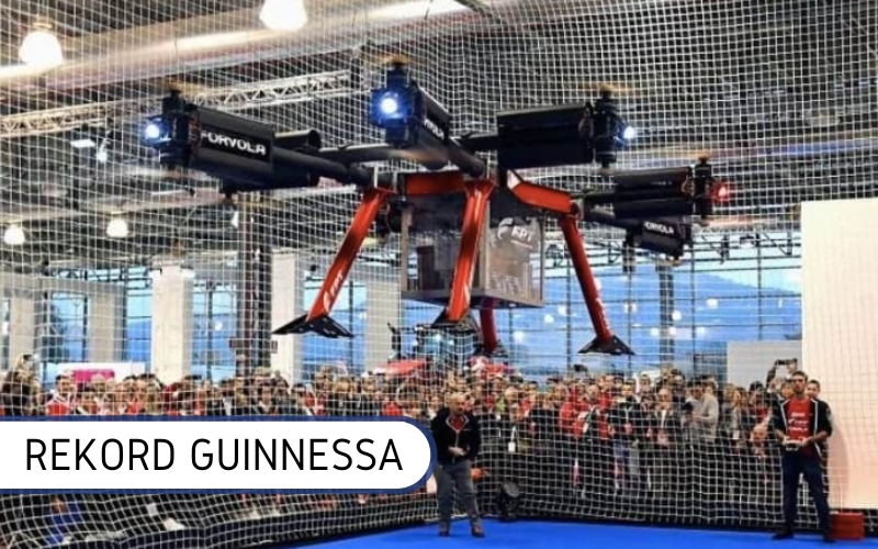 Obecny rekord Guinnessa w kategorii „Największy ładunek podniesiony przez zdalnie sterowany multicopter” został pobity 23 listopada 2018 roku w Turynie. Dokonali tego Włosi Piercarlo Ponchione i Gregory Alessio, którzy skonstruowali i zaprogramowali megadrona marki Forvola.