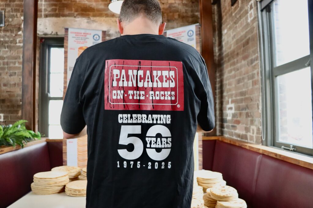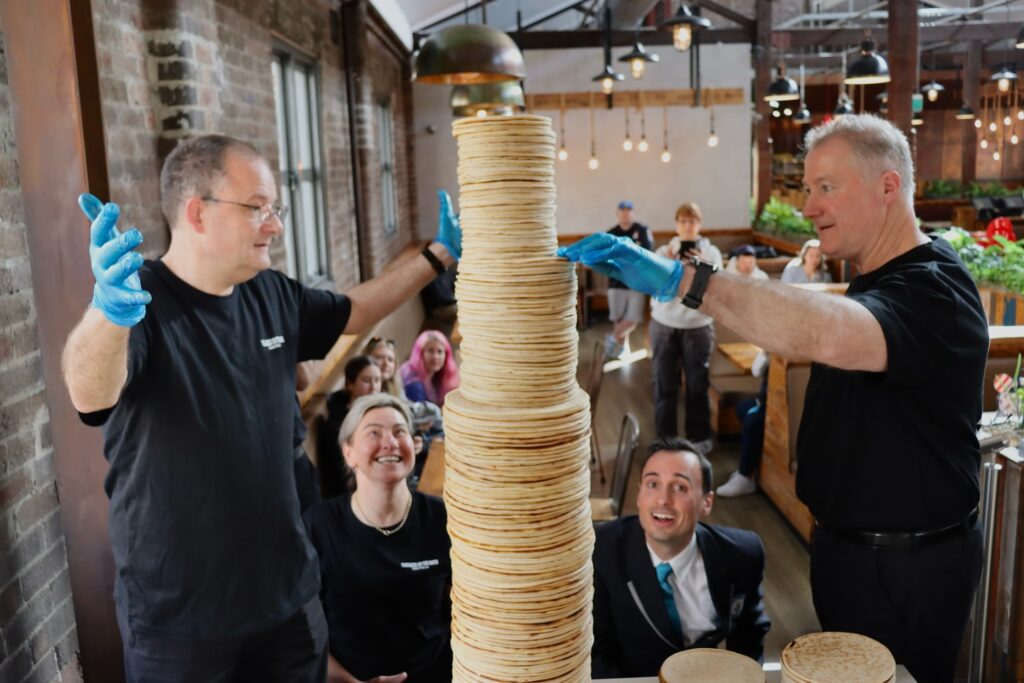 Aby uczcić 50 lat przewracania ulubionych potraw, Pancakes on The Rocks stawia na chwałę naleśnikową – próbując ustanowić tytuł rekord Guinnessa dla najwyższej wieży z naleśników! – zapowiadano przed wydarzeniem.